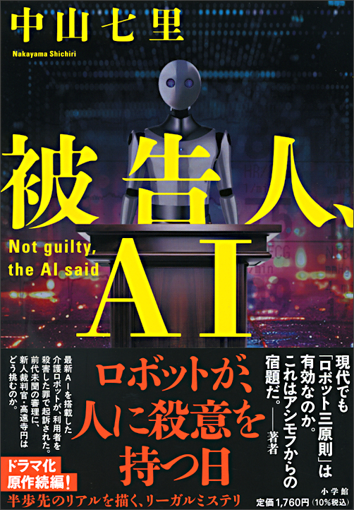 被告人、AI 被告人、AI 中山 七里/著 小学館 1,760円 独居老人が突然死した。リタこと最新AI搭載の介護ロボットが発した電磁波がペースメーカーを停止させた可能性がある。警察はリタ本体を殺人容疑で起訴することに。新人判事補・高遠寺円は前代未聞の裁判に挑む