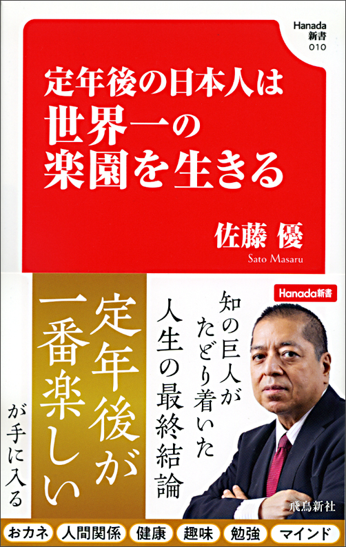 定年後の日本人は世界一の楽園を生きる 定年後の日本人は世界一の楽園を生きる 佐藤 優/著 飛鳥新社 1,089円 知の巨人・佐藤優さんが「人生の集大成」と位置付ける定年後の指南書。「定年後が一番楽しい」と断言できるようになる知の技法を完全伝授します。“令和の定年後のバイブル”と呼べる一冊で10万部を突破しました。